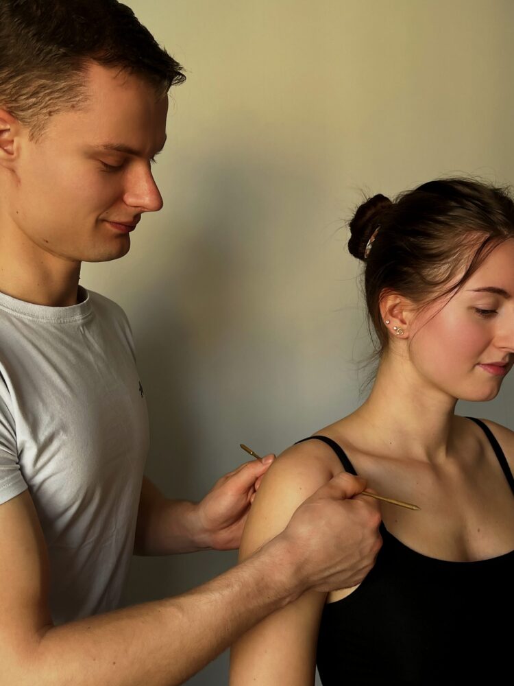 - Wpływa na układ nerwowy i mięśniowy – poprzez odpowiednią stymulację punktów na skórze pomaga w regulacji napięcia mięśniowego. Przynosi ulgę w stanach przeciążeniowych i przewlekłym stresie.